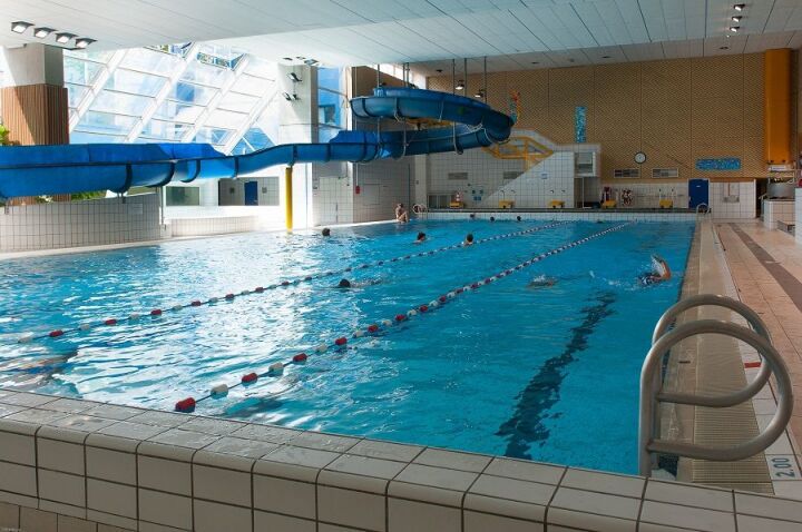 Bassin de 25 m, petit bassin et toboggan à la piscine d'Evry