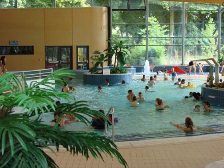 - Un espace aquatique avec un bassin de sportif de 25 m, un bassin loisirs avec banquette bouillonnante et jets massants, une pataugeoire pour les petits et un toboggan de 60 m