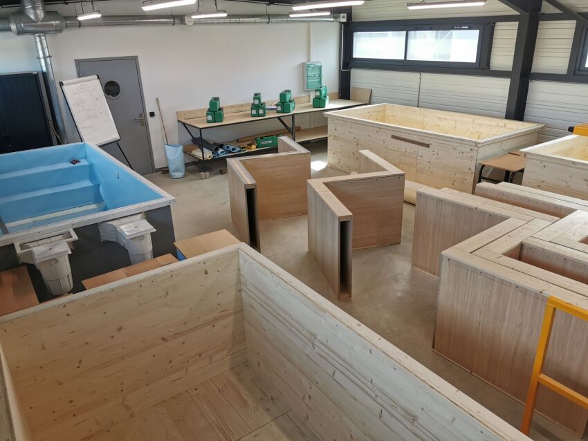 Le plateau technique se compose de piscines et de maquettes pédagogiques, ainsi que de spas, de maquettes de systèmes de filtration, ou encore de systèmes électriques. Une zone pour la pose de coque est également en préparation.