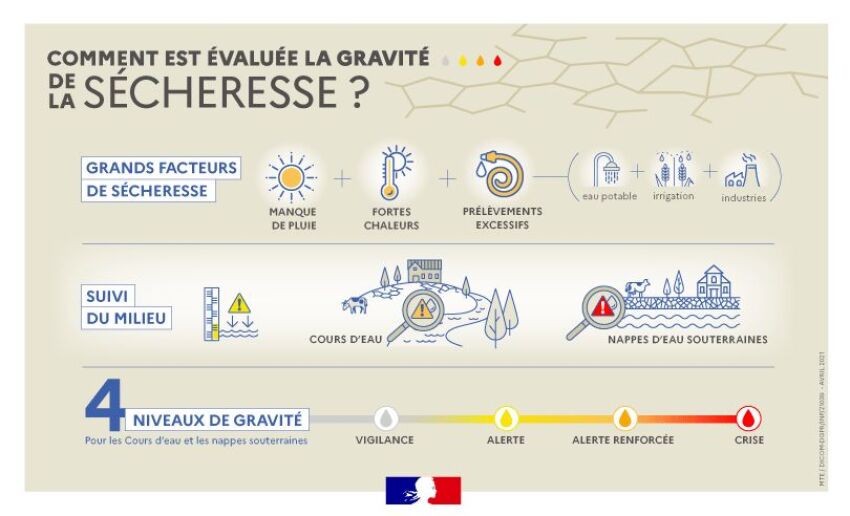 Sécheresse : 4 niveaux d’alerte pour des restrictions progressives
