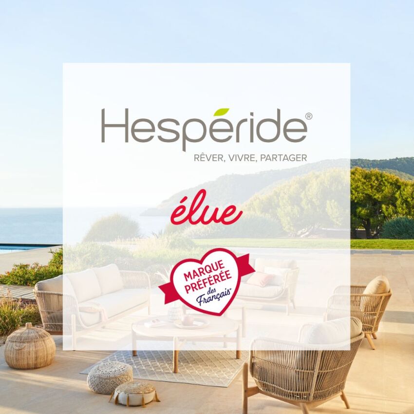 Hespéride, spécialiste du mobilier de jardin élégant et accessible, produit et commercialise une large gamme de tables, chaises, salons, tonnelles, pergolas, transats, ... La marque est en outre Mobilier Officiel du tournoi de Roland Garros depuis 2021 et vient d'être élue pour la première fois Marque Préférée des Français dans la catégorie "Mobilier de Jardin".