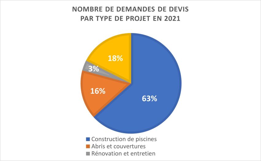 En 2021, Guide-Piscine enregistrait 122 demandes de devis sur le département du Finistère, pour un ratio de 3,19 demandes par pisciniste. Un chiffre assez peu élevé, mais avec une répartition assez parlante : seules 3% des demandes concernent des projets de rénovation ou d’entretien, signe d’un marché très jeune et beaucoup plus axé sur la construction de piscines. Au niveau national, ce sont 10% du total des demandes de devis qui concernent l’entretien et la rénovation.