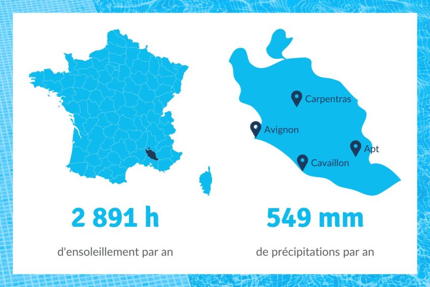 Le marché de la piscine dans le Vaucluse est favorisé par une météo agréable. En effet, le nombre d'heures d'ensoleillement est élevé et le niveau de précipitations est faible. La prépondérance des maisons individuelles offre un marché substantiel pour l'installation de nouvelles piscines ou l’amélioration de celles déjà existantes.