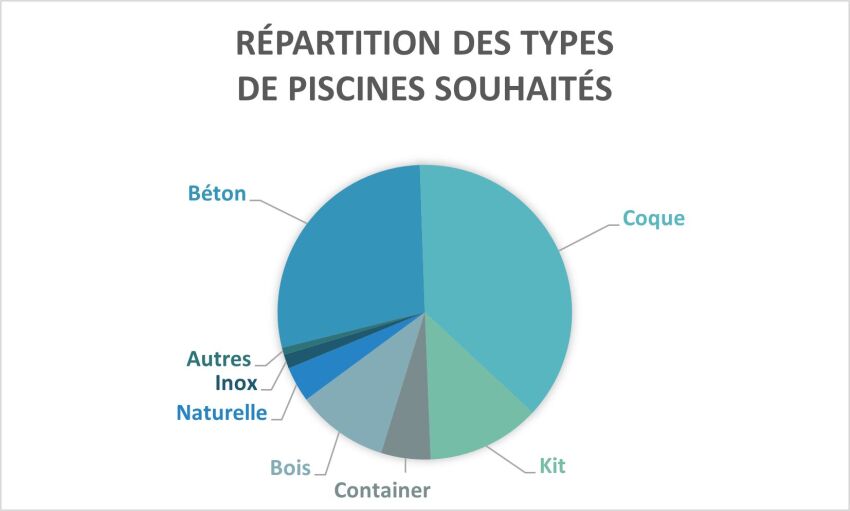 Lorsque l’on rentre dans le détail, on remarque que les piscines coques et les piscines béton sont particulièrement appréciées des demandeurs, avec respectivement 37% et 28% des demandes de devis déposées sur Guide-Piscine.fr en 2021.