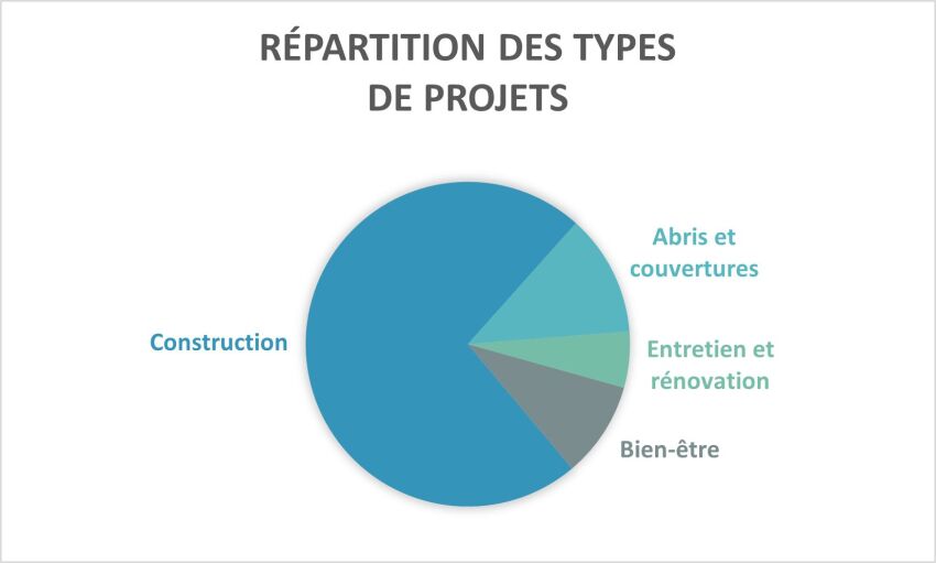 Sans surprise, la construction de piscines est le type de projet le plus demandé, avec 72% des demandes, suivi des abris et couvertures, qui représentent 12% des demandes, puis le bien-être (9,5% des demandes), et l’entretien/rénovation, qui représentent 5,5% du nombre total de demandes.