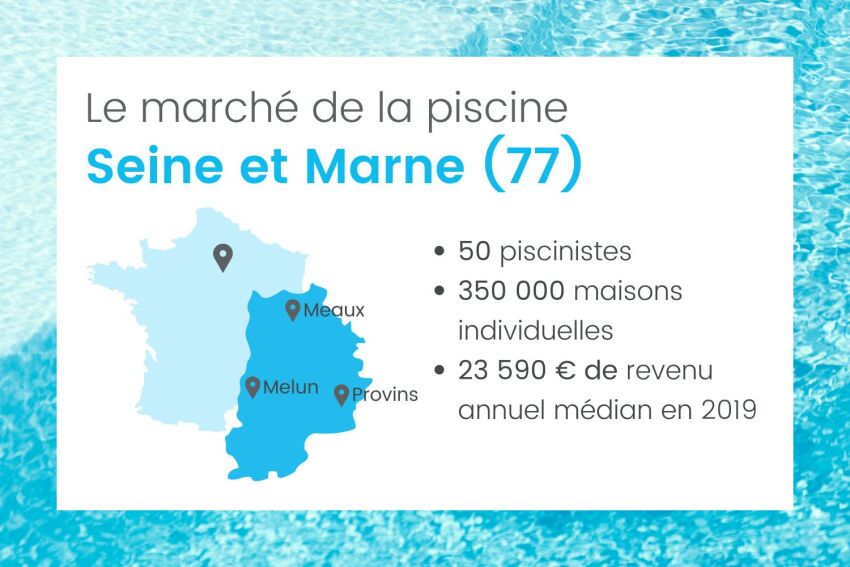 Le département dénombre 50 pisciniers pour une population d’1,4 millions d’habitants soit un pisciniste pour 28 423 habitants. En comparaison, les départements voisins comme l’Essonne dispose d’un pisciniste pour 34 254 habitants, et 62 483 dans le Val d’Oise. La Seine-et-Marne est le 33ème département avec le plus d’installateurs de l’annuaire Guide-Piscine.