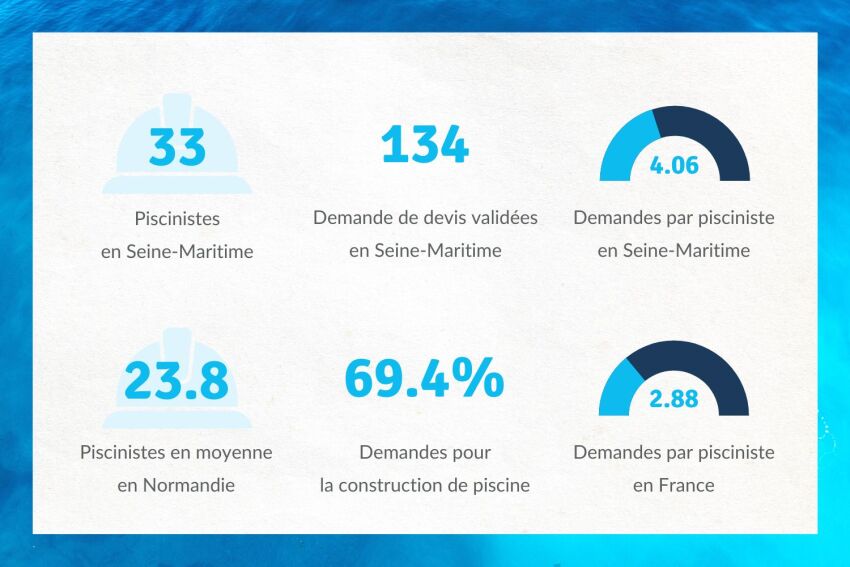 Enfin, avec un ratio de 4,06 demandes de devis par pisciniste, la Seine-Maritime se hisse au-dessus du ratio moyen national qui est de 2,88 demandes par professionnel de la piscine.