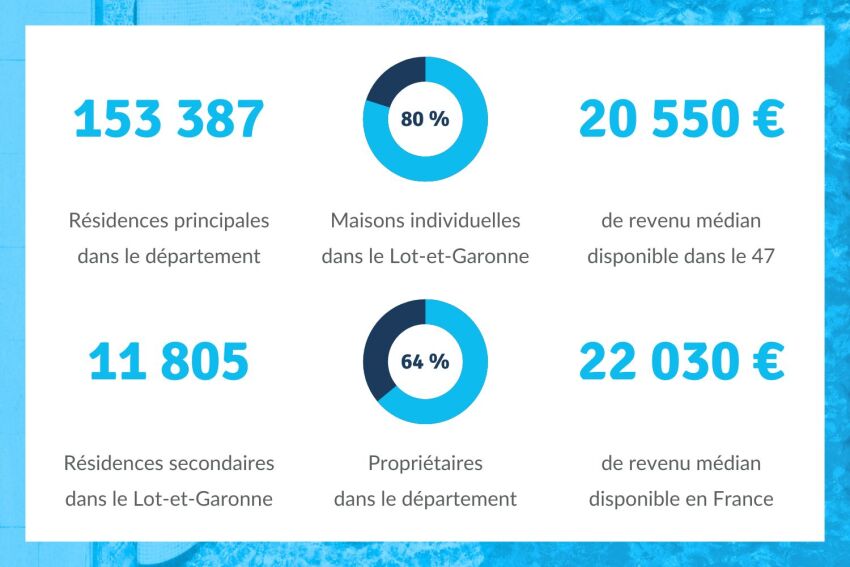 La densité de population du Lot-et-Garonne est moins élevée que sur le reste du territoire français et le département se situe à la 70ème place des départements les plus peuplés de France avec 331 271 Lot-et-Garonnais. De plus, le revenu moyen par habitant est moins important dans le département qu'il ne l'est dans le reste de la Nouvelle-Aquitaine et de la France. De ce fait, le budget moyen pour la construction et la rénovation de piscine est plus faible dans la région.