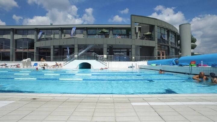 Lors des beaux jours, les nageurs peuvent profiter d’un solarium extérieur avec transats pour se reposer, de plages engazonnées et d’un bassin ludique extérieur avec des courants et des jeux d’eau. Le bassin est accessible toute l’année.