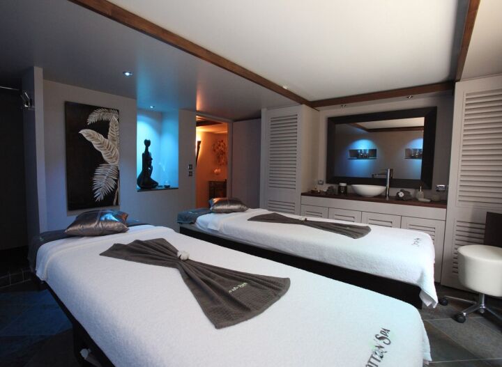 Le spa propose des soins du corps et du visage à la carte : hydromassages, gommages (aux olives, riz, noix de coco...), enveloppements (aux algues de Bretagne, aux oranges du Maroc, au gingembre de Bali...), modelages, soins minceur, nettoyages de peau, beauté des mains et des pieds...