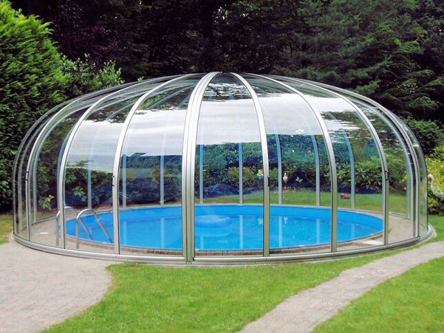 - l'abri rotonde, offre une vue panoramique de l'extérieur et met en valeur votre piscine, qu'elle soit elle-même de forme arrondie ou à angles droits.