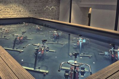 L'aquabiking se pratique généralement en cours collectifs, mais certaines piscines mettent des aqua-bike à la disposition des nageurs tout au long de la journée DR