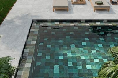 On retrouve différentes dimensions de carrelage pour donner des effets différents et s’adapter à tous les projets et toutes les formes de piscine.