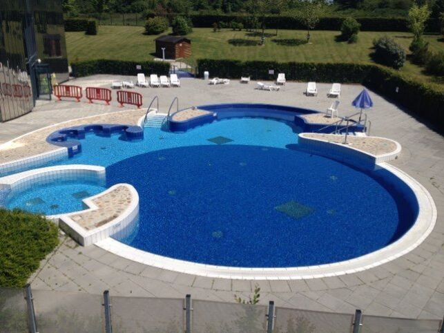 - Un bassin ludique extérieur avec banquettes massantes et geysers,