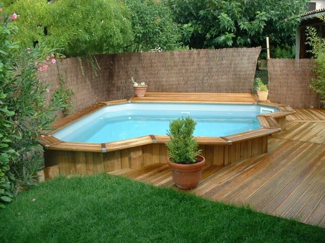 - Une piscine en bois semi-enterrée