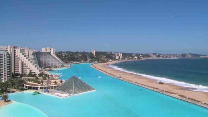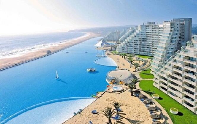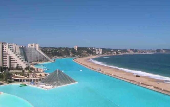 La deuxième plus grande piscine du Monde se trouve dans la station balnéaire d’Algarrobo, au centre du Chili, dans la région de Valparaiso et à 130 km au sud de la capitale Santiago du Chili. Elle appartient au complexe touristique San Alfonso del Mar. Le plus surprenant est que cette piscine ne se trouve qu’à quelques centaines de mètres de l’océan Pacifique.