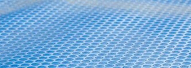 La couverture de piscine solaire est composée d'une face lisse et d'une autre face avec des bulles. La face à bulles doit être mise en contact avec l'eau ; un effet ventouse permet à la bâche de ne pas s'envoler sous l'effet du vent.