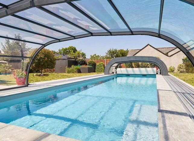 Notez que l’on peut également opter pour un abri de piscine semi-coulissant, qui permet de ne découvrir que la moitié du bassin.