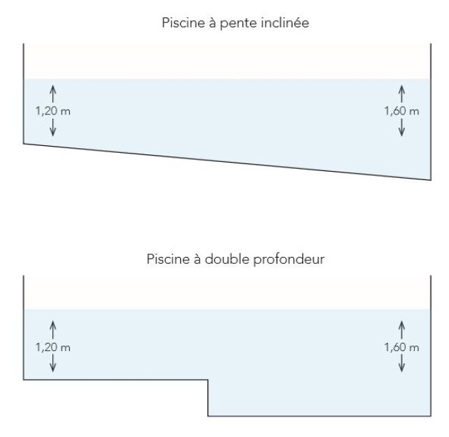 Comme son nom l’indique, la piscine à double profondeur est en fait le bassin de votre piscine, mais avec deux zones à fond plat, une zone étant plus profonde que l’autre. Il ne faut pas la confondre avec la piscine à pente régulière qui a un fond incliné. Dans le cas de la piscine à double profondeur, la différence de fond se fait par le biais d’une marche.