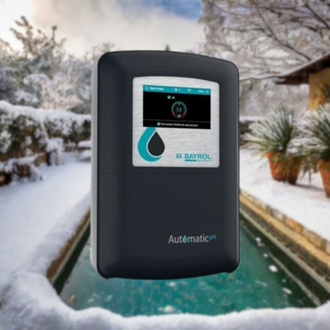 Continuez à réguler le pH de votre piscine facilement même sous la neige avec ce régulateur de pH par Bayrol ! © Aidé par l'IA