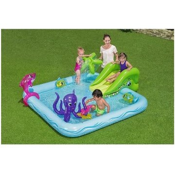 Elle a une capacité d'accueil de 150 litres d'eau et est spécifiquement conçue pour le bain de 2 enfants à partir de 2 ans. De plus, vous trouverez dans l'emballage un kit de réparation destiné aux petits pores ou aux crevaisons éventuelles.