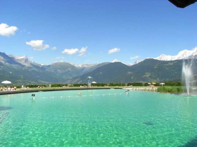 La piscine naturelle à Combloux est le premier plan d’eau écologique public ouvert à la baignade en France. Face au Mont-Blanc, vous pouvez profiter d’une eau limpide exempt de tous produits chimiques et vous prélasser au soleil sur le solarium en bois ou la plage en gazon. Les plantes aquatiques, le jet d’eau et le petit ruisseau garantissent la propreté de l’eau. Chauffée naturellement par les rayons du soleil, la piscine est donc ouverte uniquement pendant la période estivale. Afin d’offrir aux usagers une eau de qualité irréprochable, l’accès au bassin est limité à 700 entrées par jour. Il est donc conseillé de réserver.