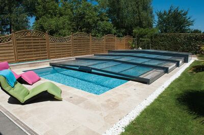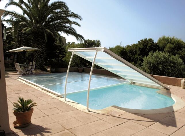 L’abri de piscine plat est pratique à utiliser et à installer. © Abrisud