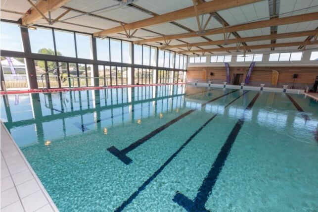 - un bassin sportif de 25 m ouvert sur l'extérieur, avec 6 couloirs de nage et équipé d'un fond mobile de 125 m²,