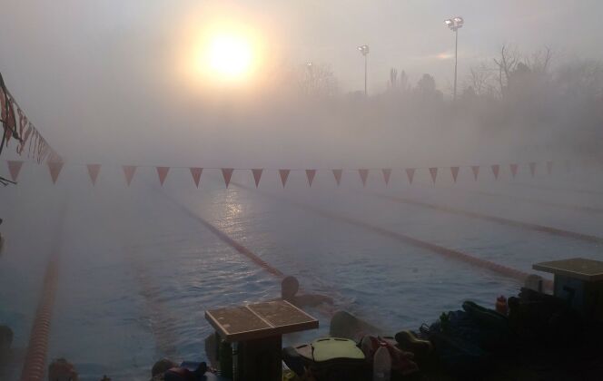 Chaque hiver, malgré le froid persistant, les nageurs du M.O.N. (Mulhouse Olympic Natation) continuent de s'entraîner dans le bassin extérieur. L'équipe Coach Nage a pris quelques clichés lors d'une séance matinale d'entraînement de haut niveau, au travers de la brume, que nous vous faisons découvrir.