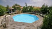 - Les piscines avec ossature bois semi-enterrées, qui s'intègrent parfaitement dans tout type de jardin.