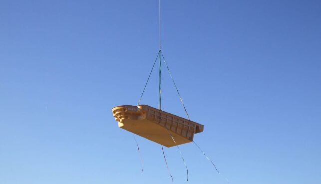 Livraison d'une piscine coque par hélicoptère © Arion-piscines-polyester.com