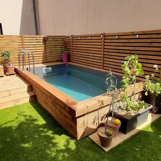La piscine semi-enterrée en bois et ses accessoires (© PISCIZ)