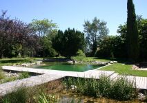 Aménagée au cœur du jardin, la piscine "naturelle" (officiellement appelée "Bassin de baignade artificielle") s'intègre harmonieusement dans le paysage qui l'entoure. Une piscine "écologique" a ressemble fortement à un plan d’eau…