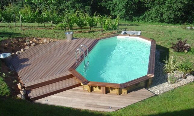 Ensuite, il convient évidemment de faire attention aux matières ; aménager sa piscine semi-enterrée c'est bien, mais le faire de manière harmonieuse c'est encore mieux ! Le matériau qui permet de ne jamais faire de faux-pas ? Le bois, sans conteste. Avec une piscine semi-enterrée en bois dans son jardin, on est sur de pouvoir mettre en place une terrasse ou un deck en bois sans que cela manque de cohérence. Mieux, on peut même se permettre de jouer avec les essences pour des effets de contraste ou autres !