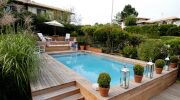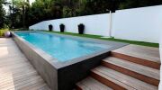 Aménagement extérieur et habillage d'une piscine semi-enterrée