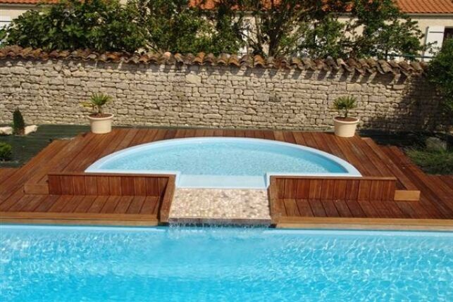 Une pataugette peut être aménagée en prolongement d’une piscine creusée. Il s’agit d’un petit bassin peu profond, de forme arrondie, relié au grand bassin par un débordement.