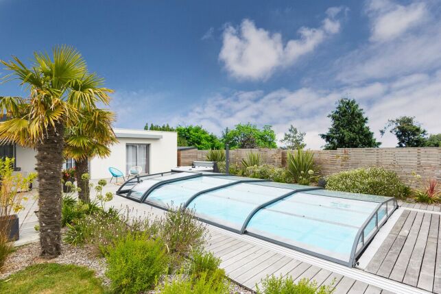 L'abri de piscine bas en aluminium est une solution design et pratique pour protéger la piscine. © Abri Gustave Rideau