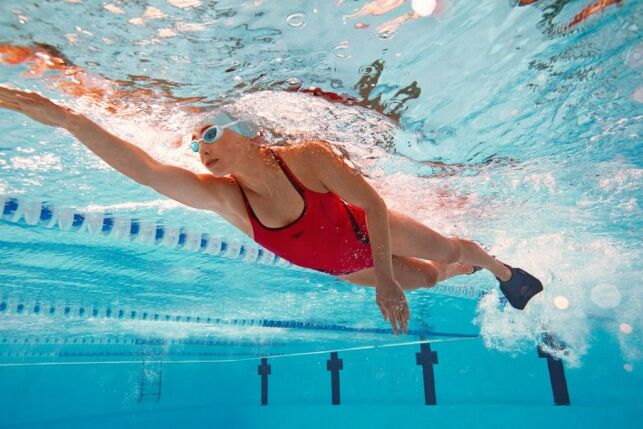 Pour muscler le bas du corps et affiner ses jambes en natation, il faut faire des exercices ciblés. Les accessoires sont un bon moyen d’arriver à vos fins car ils permettent d’isoler le bas du corps et d’augmenter la résistance. La planche est idéale pour immobiliser les bras et se concentrer sur le battement des jambes. Mais le mieux pour affiner vos jambes est de nager avec des palmes. La voilure des palmes offre plus de résistance dans l’eau que vos pieds et augmente le travail musculaire au niveau des fessiers, des cuisses, des jambes et du bas du dos. Préférez les mini-palmes aux palmes longues car elles déplacent moins d’eau et vous offrent la possibilité de faire des battements plus rapides. Les grandes palmes vous obligent à faire des mouvements plus lents et plus amples et travaillent davantage les muscles au niveau des cuisses.