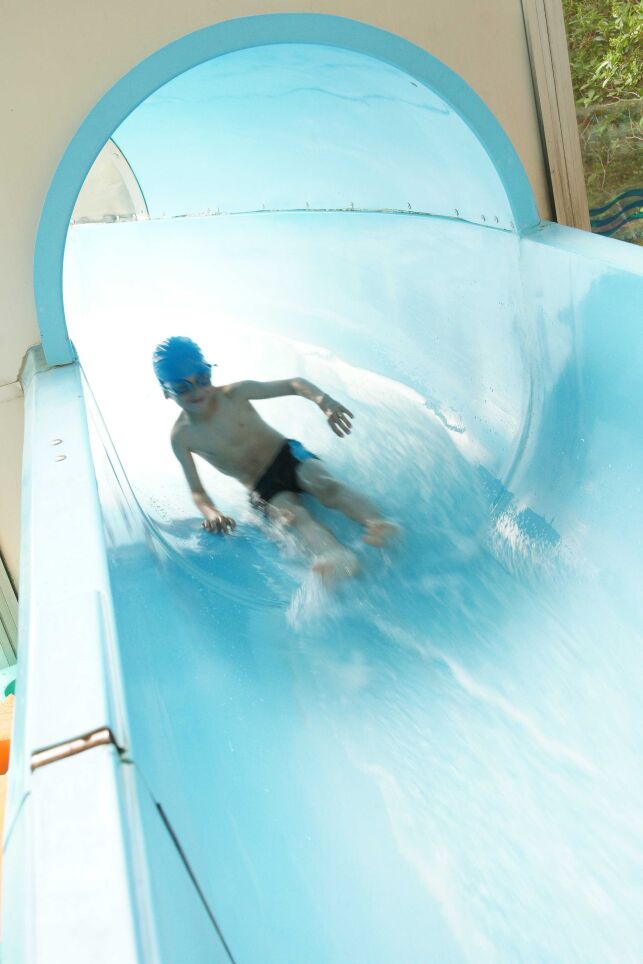- D’un plus petit bassin de 18m x 12m, dont la profondeur va de 20cm à 1,30m, équipé d’un toboggan de 33m
