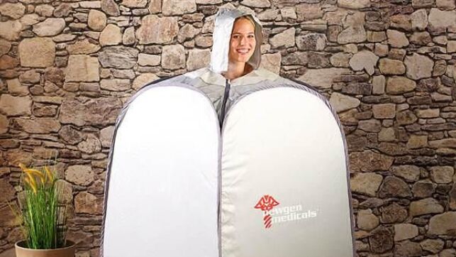 Fermé, le sauna individuel ressemble à une petite valise toute légère (il est fabriqué en PVC). Déplié, il se présente comme un grand sac dans lequel peut se glisser une personne. Très facile à utiliser, il se branche sur une prise électrique et fonctionne à l'énergie infrarouge. La tête, les épaules et les mains dépassent pour vous permettre de bouger un minimum.