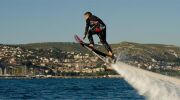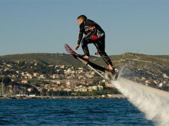 - L’hoverboard aquatique : il s’inspire directement du skate-board volant, appelé aussi hoverboard. Le principe est simple : une planche est relié à un jet-ski par un tuyau et la puissance de l’eau vous propulse directement dans les airs.