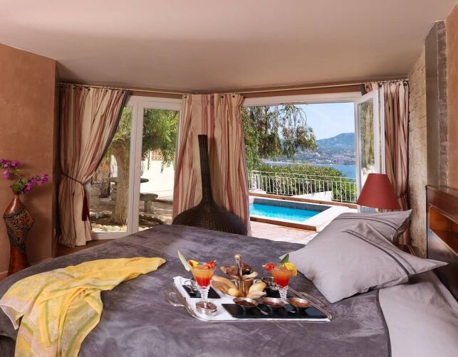 Cette suite duplex de 110 m² vous offre une piscine privée en terrasse entourée de criques sauvages et d’une plage privée.
