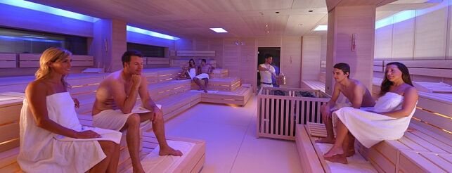 Les thermes possèdent également un espace sauna. Pour se relaxer davantage, l'établissement propose de nombreux soins du corps et massages : gommages, enveloppements, massages du monde...