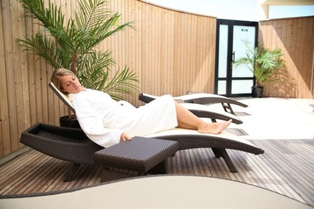 Après le soin, un espace tisanerie avec terrasse permet de prolonger la détente.