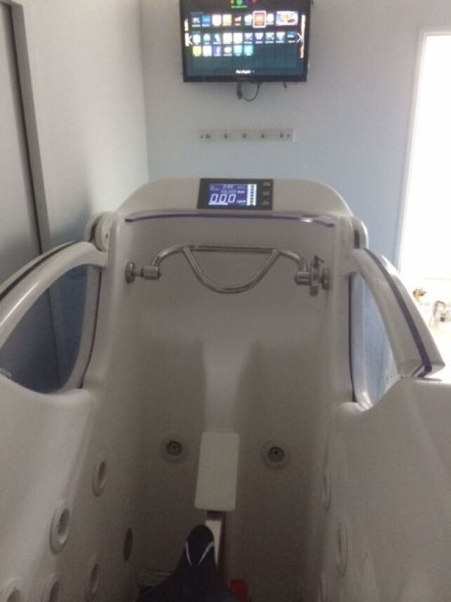 Pour la séance, le centre offre des chaussettes d'aquabiking et une bouteille d'eau. Accès internet et Tv dans toutes les cabines.